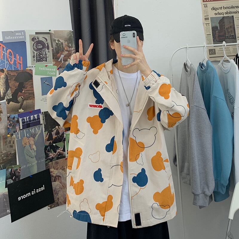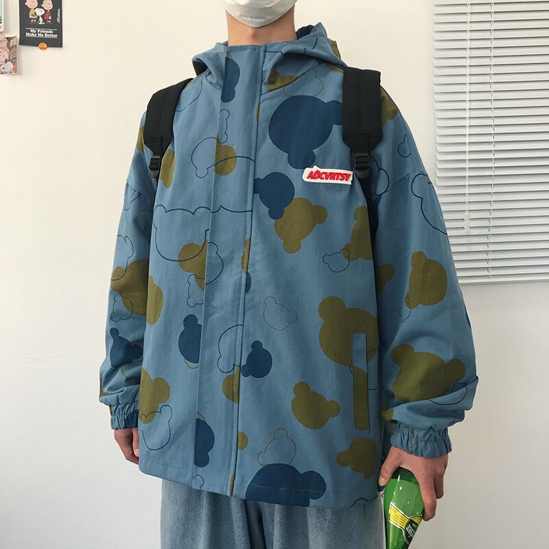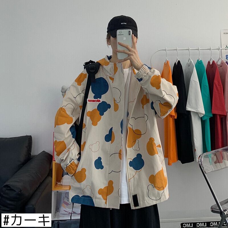 スプリングオータムプリント柄ジャケット ルーズフード かわいい 春物 秋物 2/13 mi2094901965882