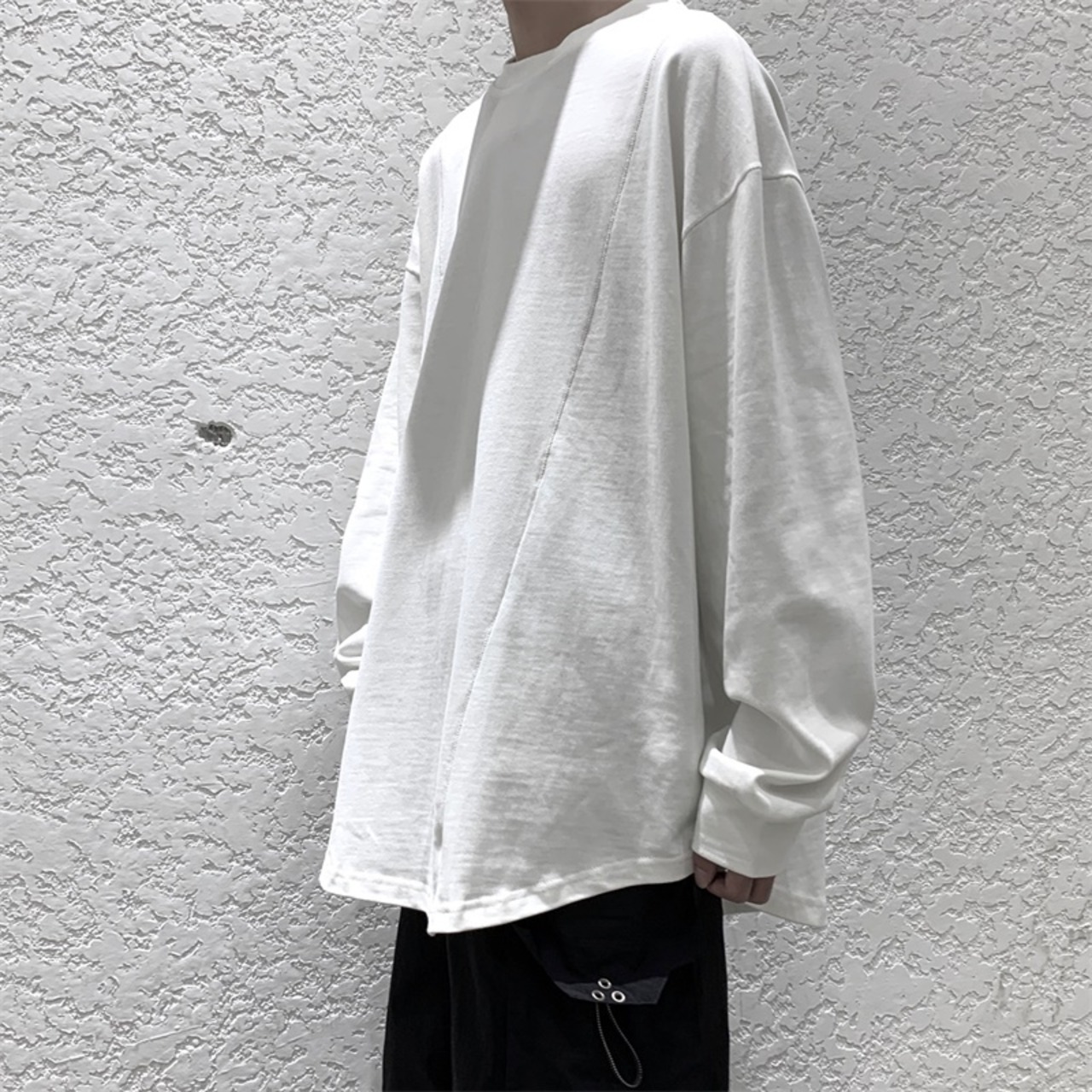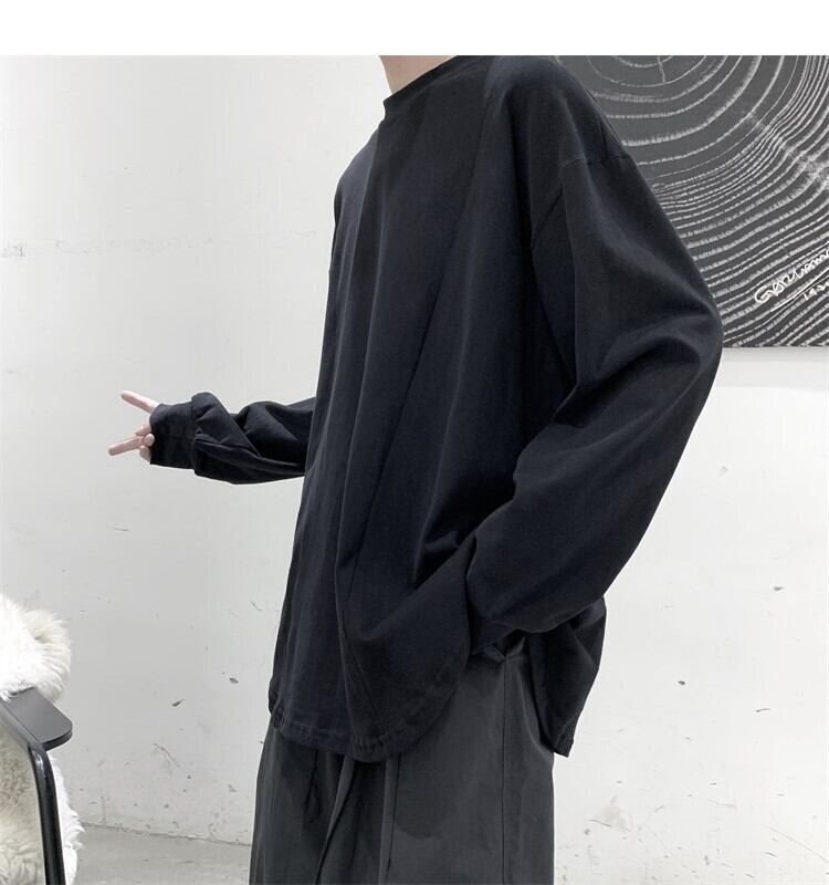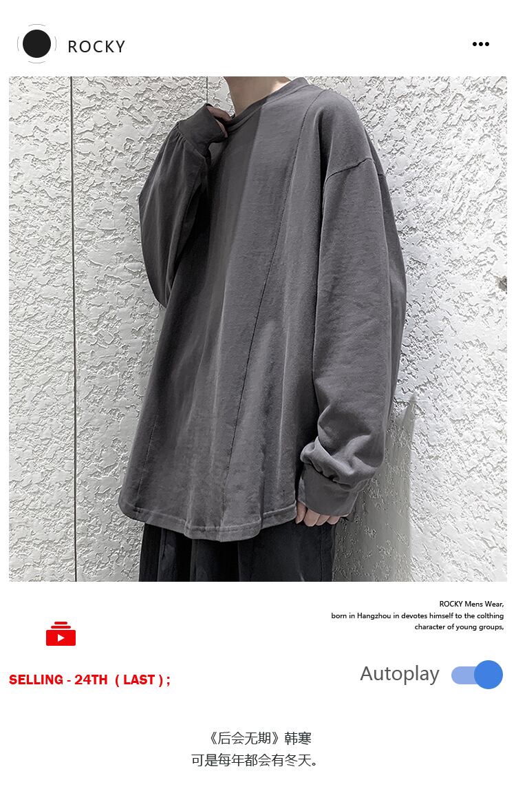 ソリッド カラーTシャツ スプリングオータムラウンドネックルーズ ロング 春物 秋物 Oネック ソリッドカラー 2/13 mi2047842125462