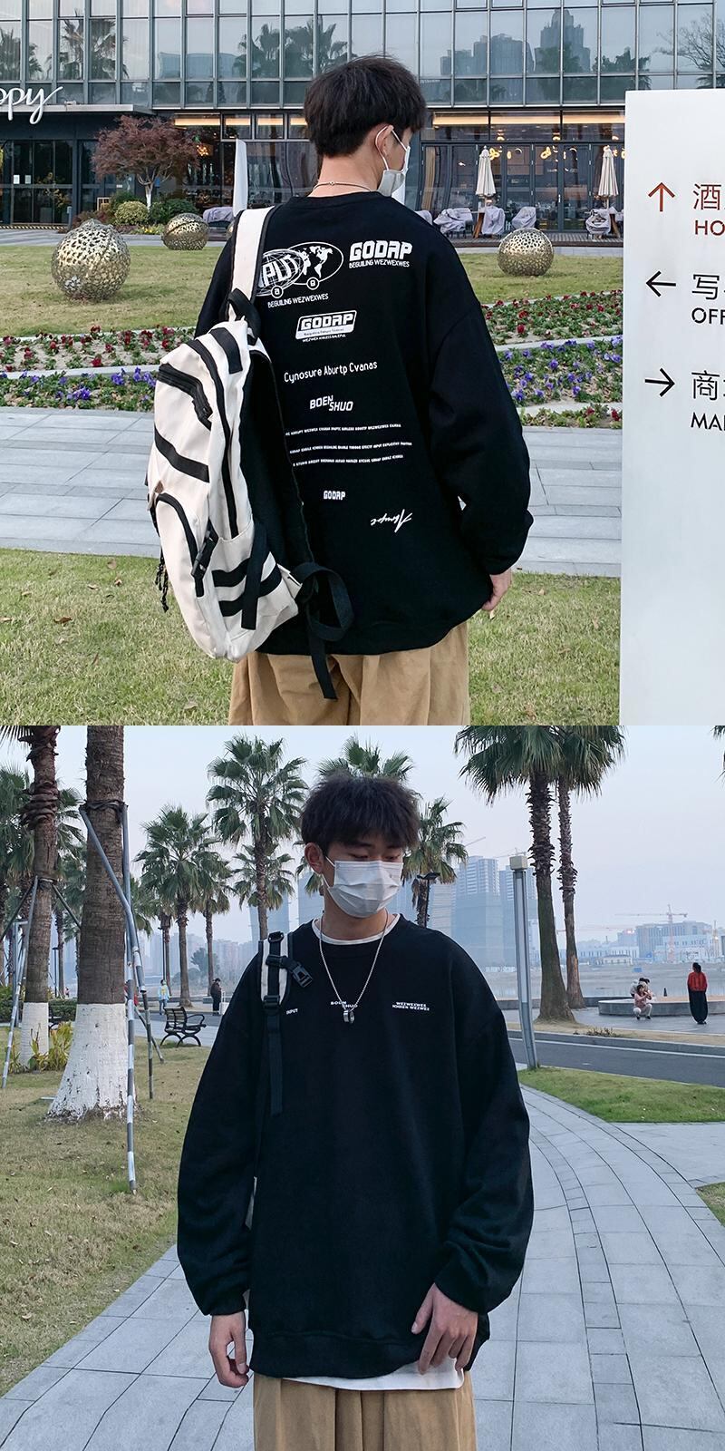 プリントラウンドネックセーター スプリングオータムルーズシャツ 春物 秋物 Oネック 2/13 mi2035052287484