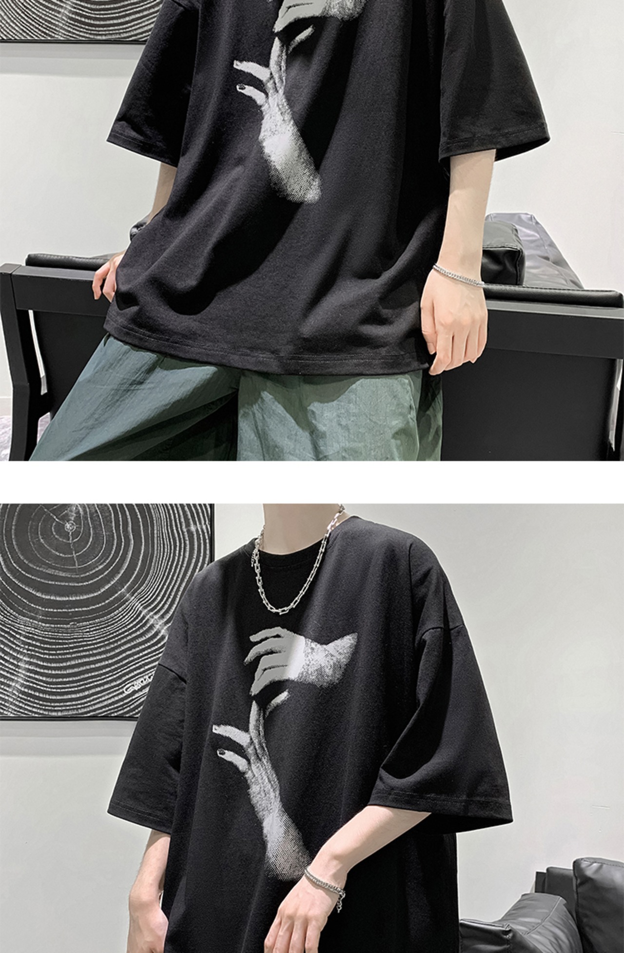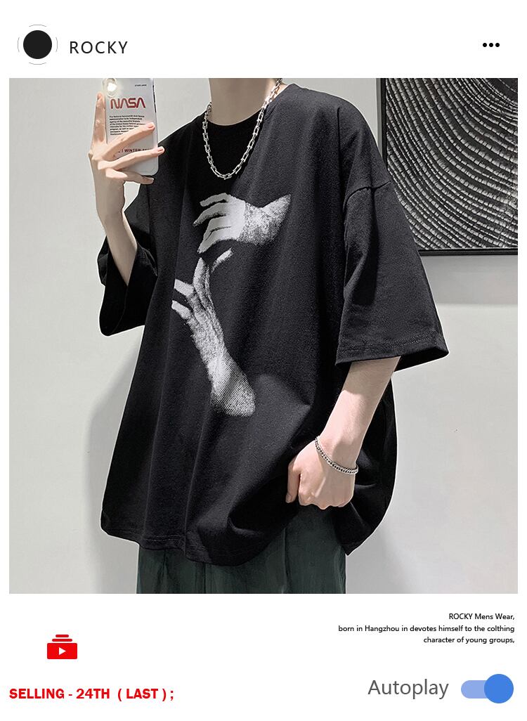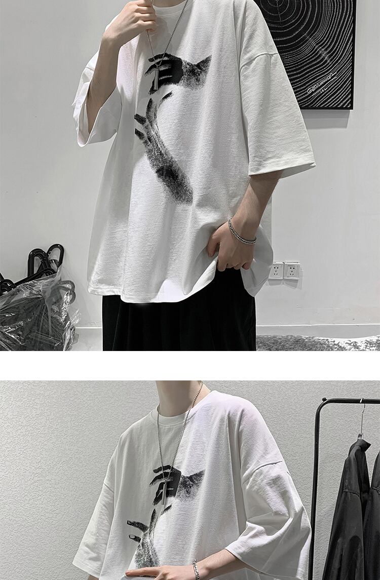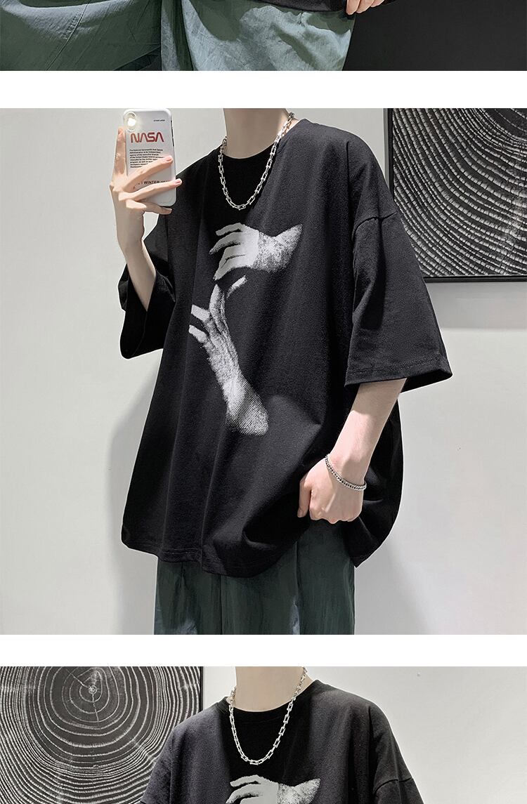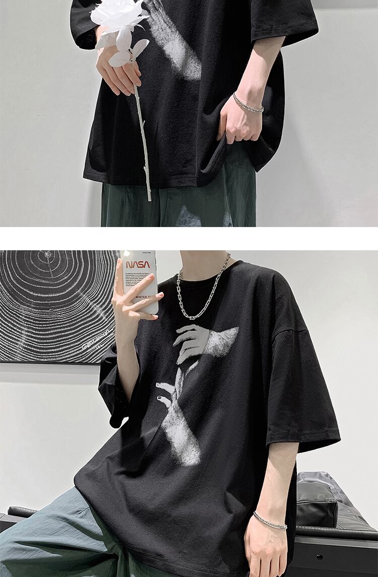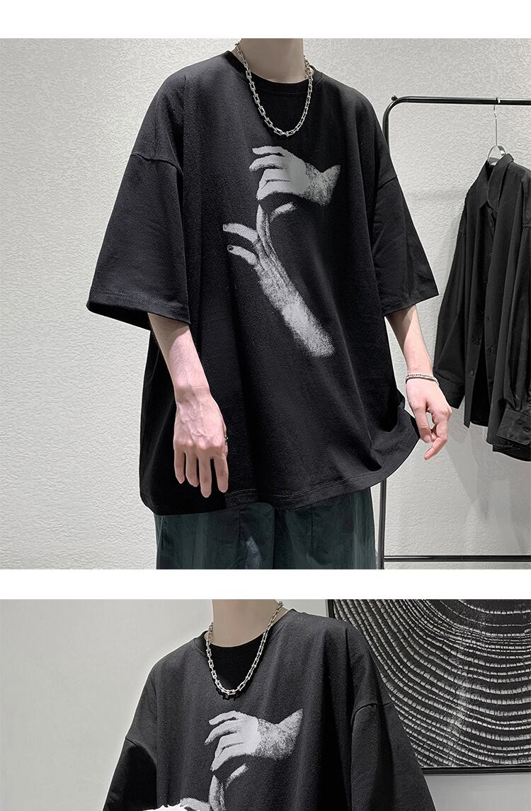 サマーダークブラックプリントルーズTシャツ スタイル 夏物 2/13 mi2098981676796