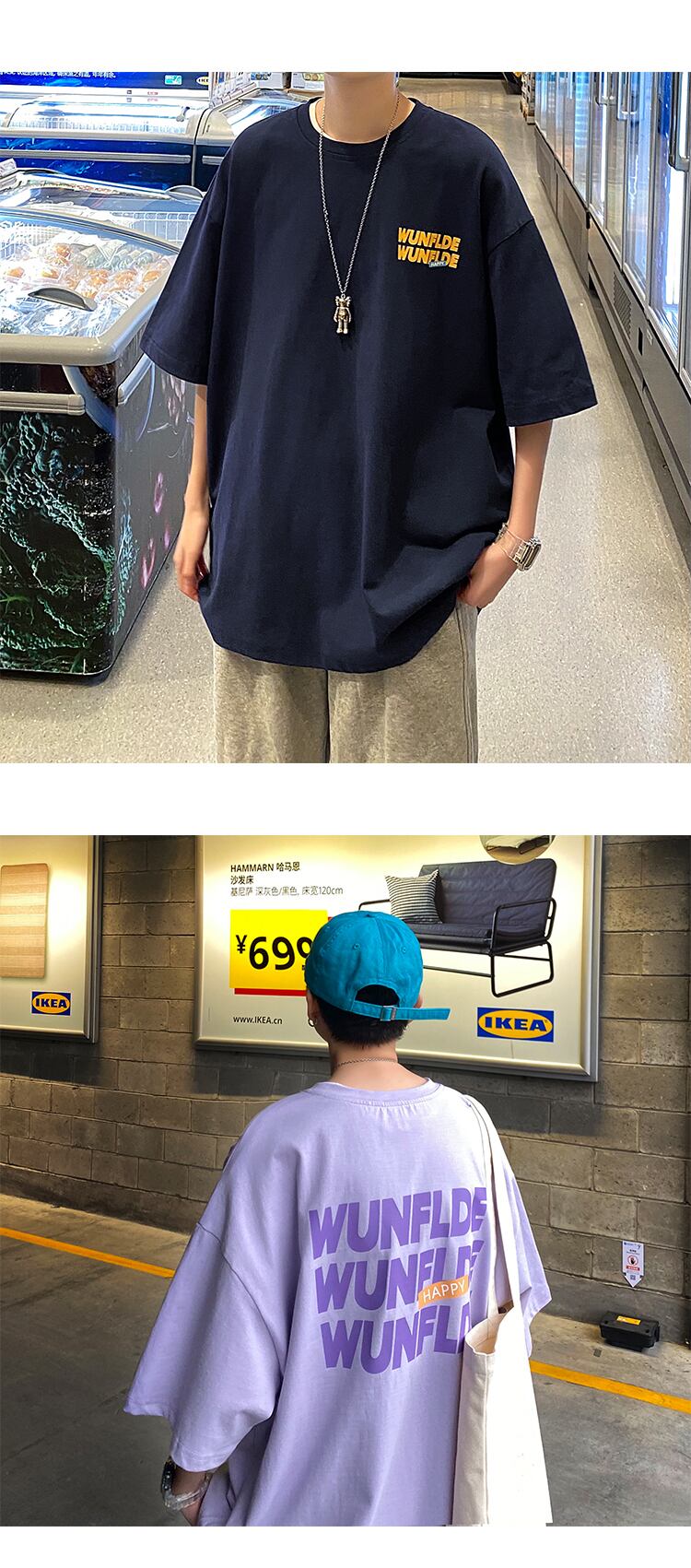 サマー半袖スリーブTシャツ プリント柄トップス ルーズラウンドネック ショート ハーフスリーブ 夏物 Oネック 2/13 mi2082000721769