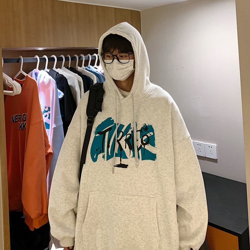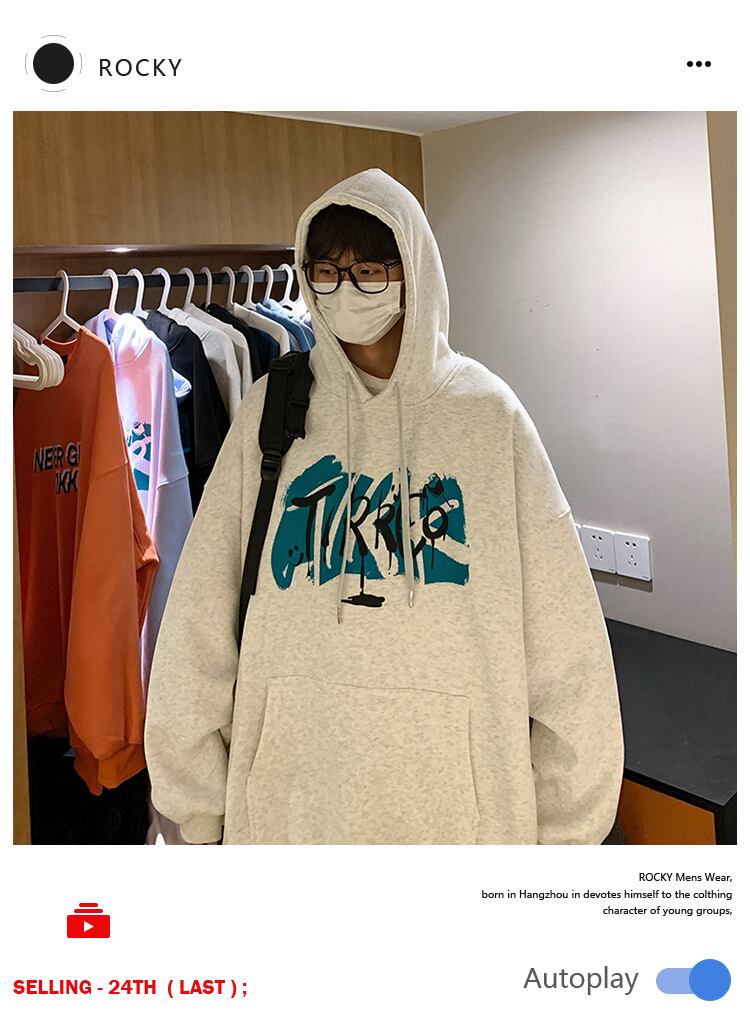 スプリングオータムフードセーター ルーズプリント柄ジャケット 春物 秋物 2/13 mi2032916000655