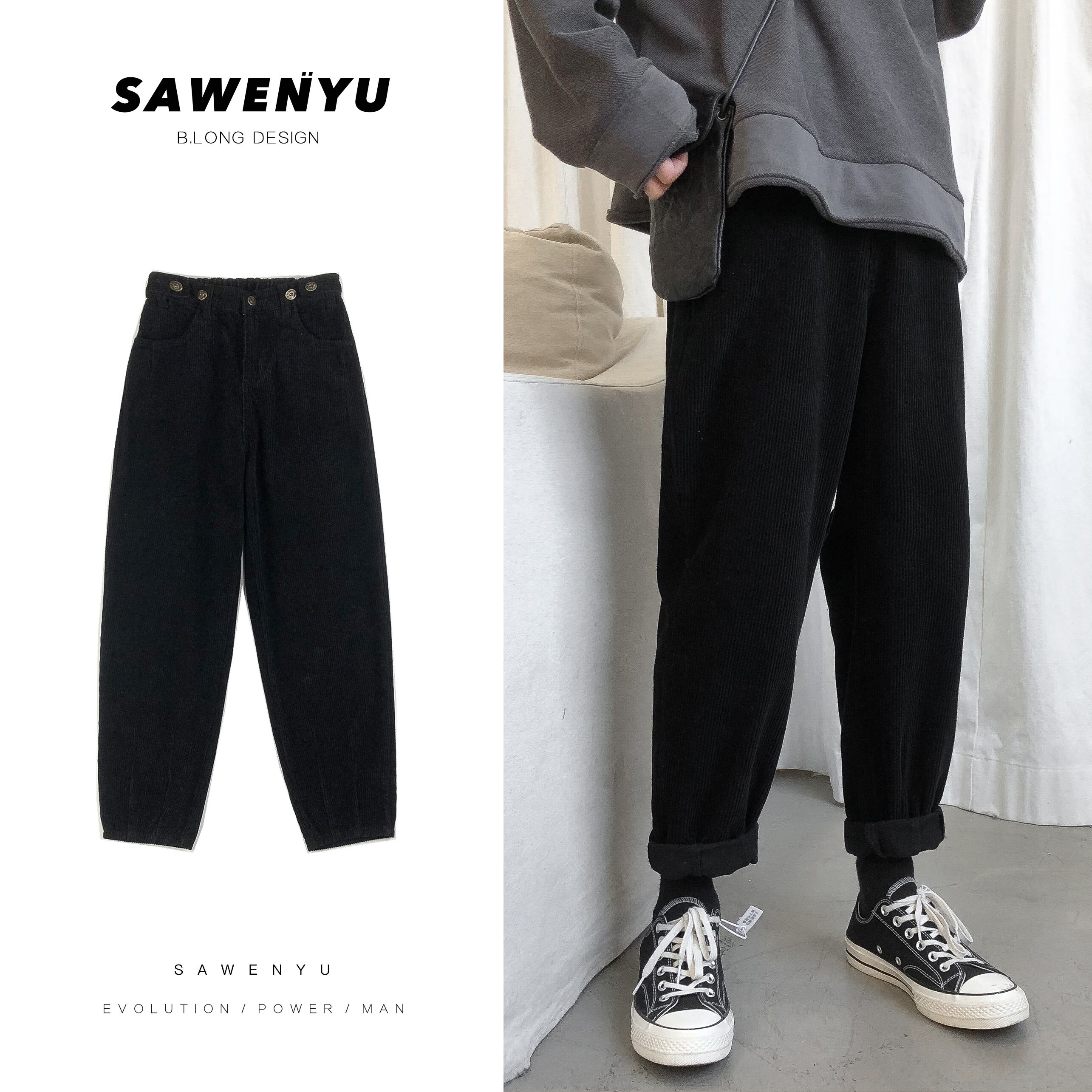 スプリングオータムスタンダードパンツ ルーズコーデュロイカジュアル レトロ ペンダント 春物 秋物 2/13 mi2022211273950