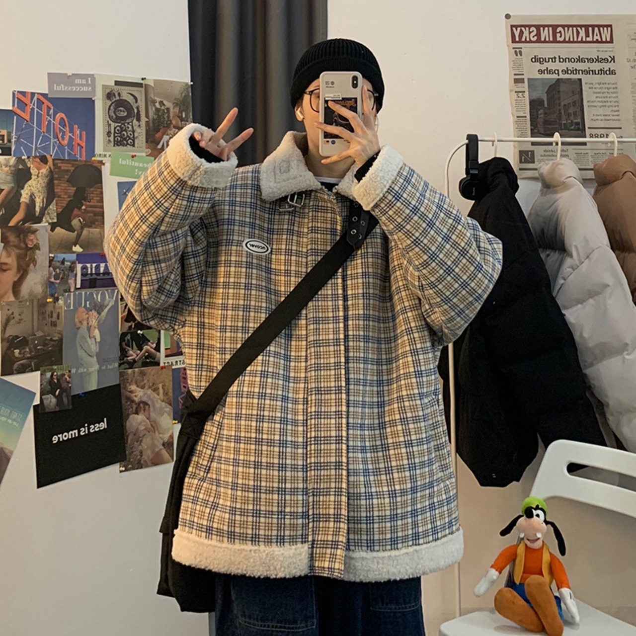 ウィンターウール格子柄ジャケット スタイルカラー コットン ストリート 冬物 2/13 mi2076139942583