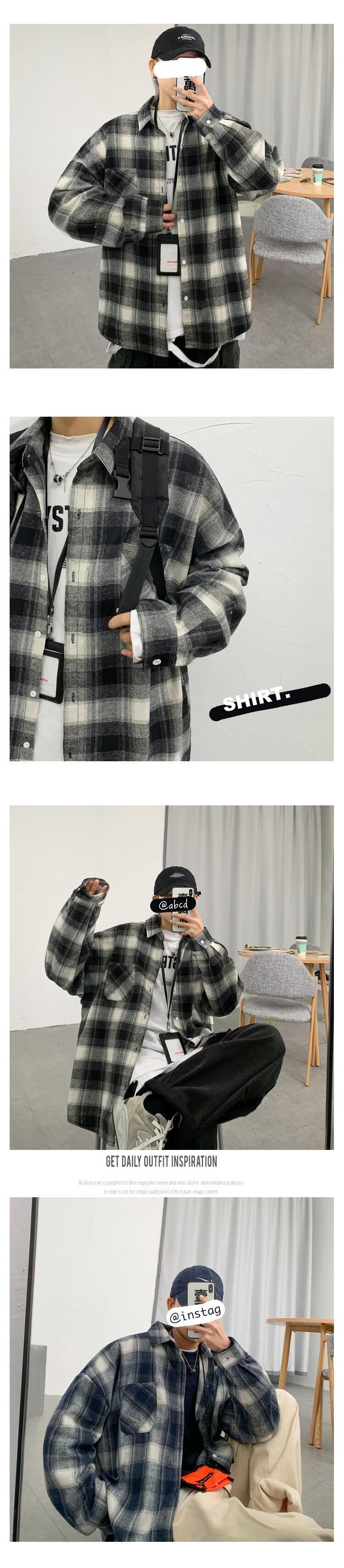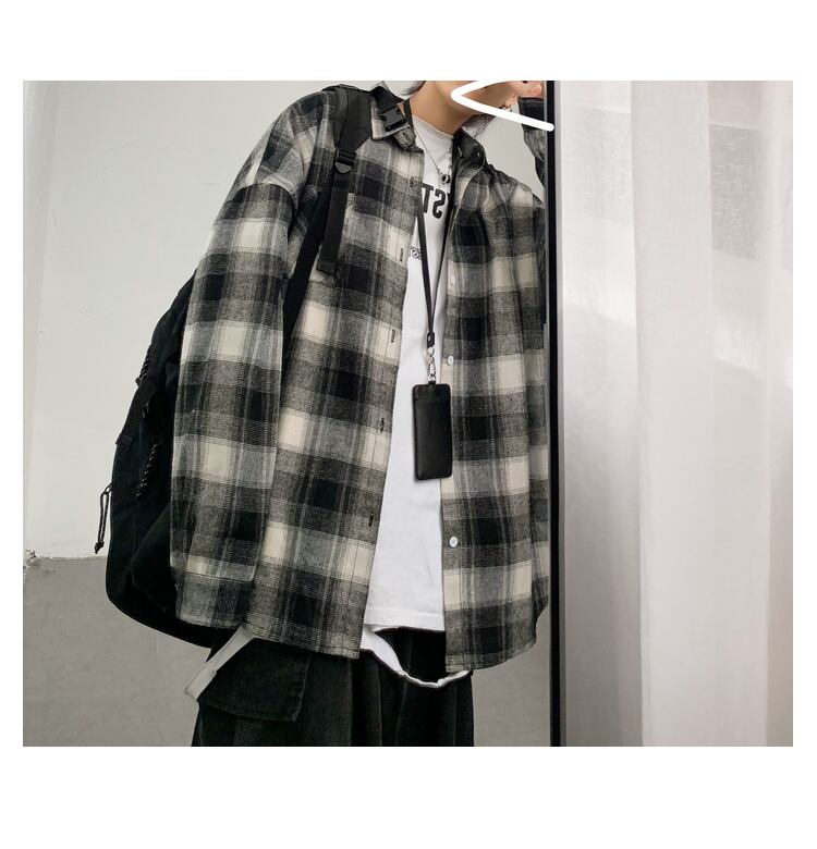 スタンダード格子柄ルーズシャツ スプリングオータムカジュアルジャケット ロング レトロ 春物 秋物 2/13 mi2042637105645