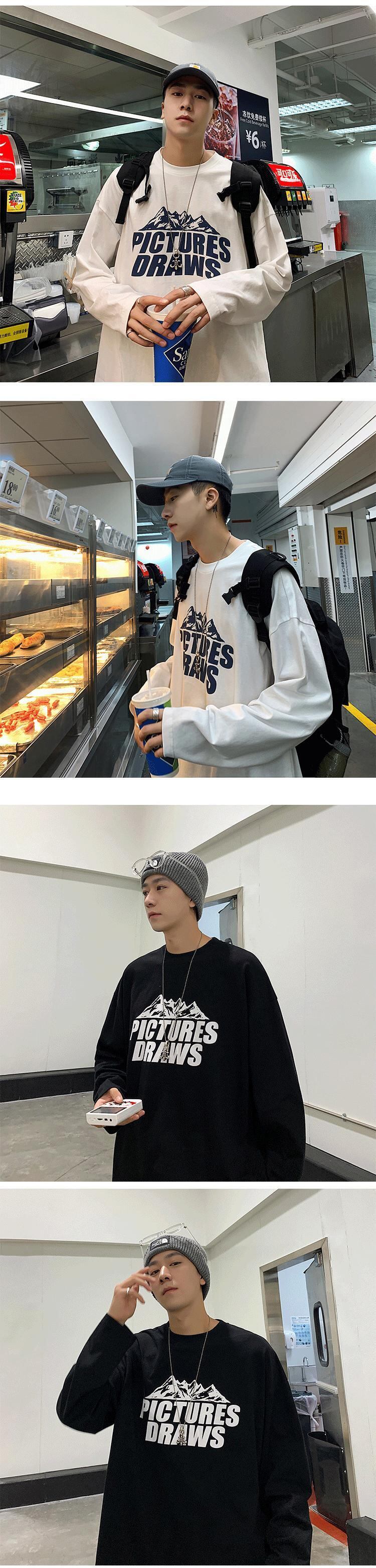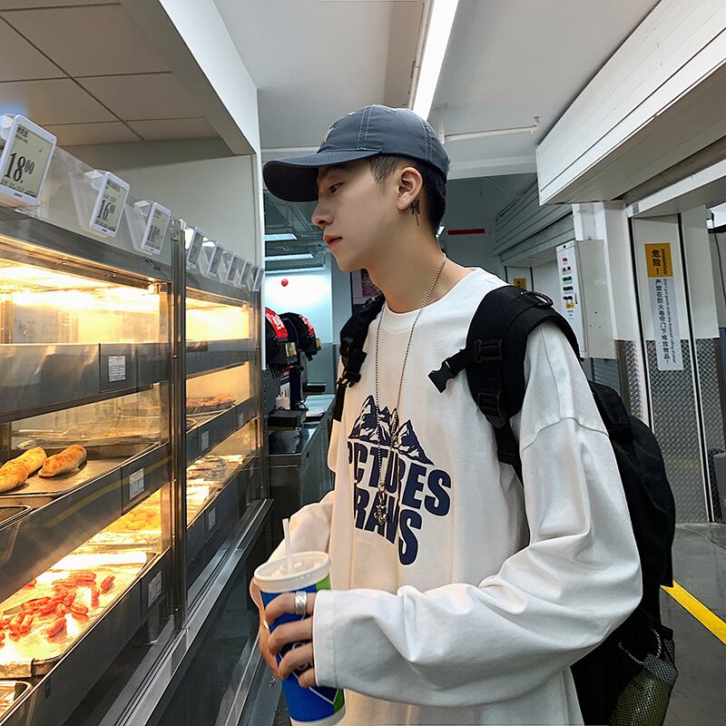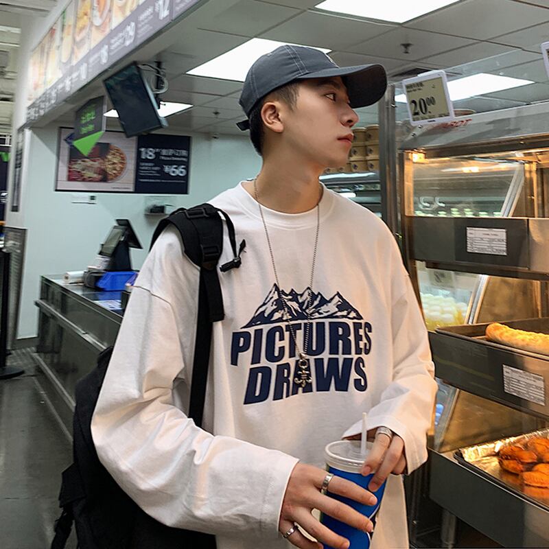 スプリングオータムプリントTシャツ シャツ スタンダードルーズ ロング レトロ 春物 秋物 2/13 mi2080874017421