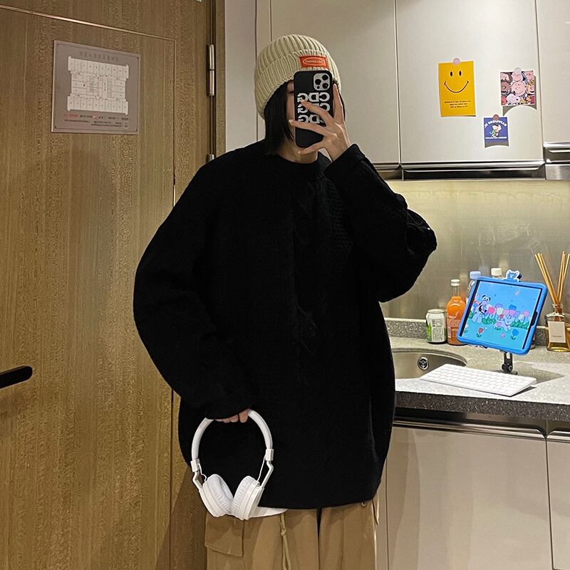 ウィンターソリッド カラージャカードラウンドネックセーター かわいい 冬物 Oネック ソリッドカラー 2/13 mi2088493754245