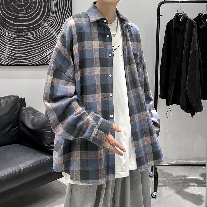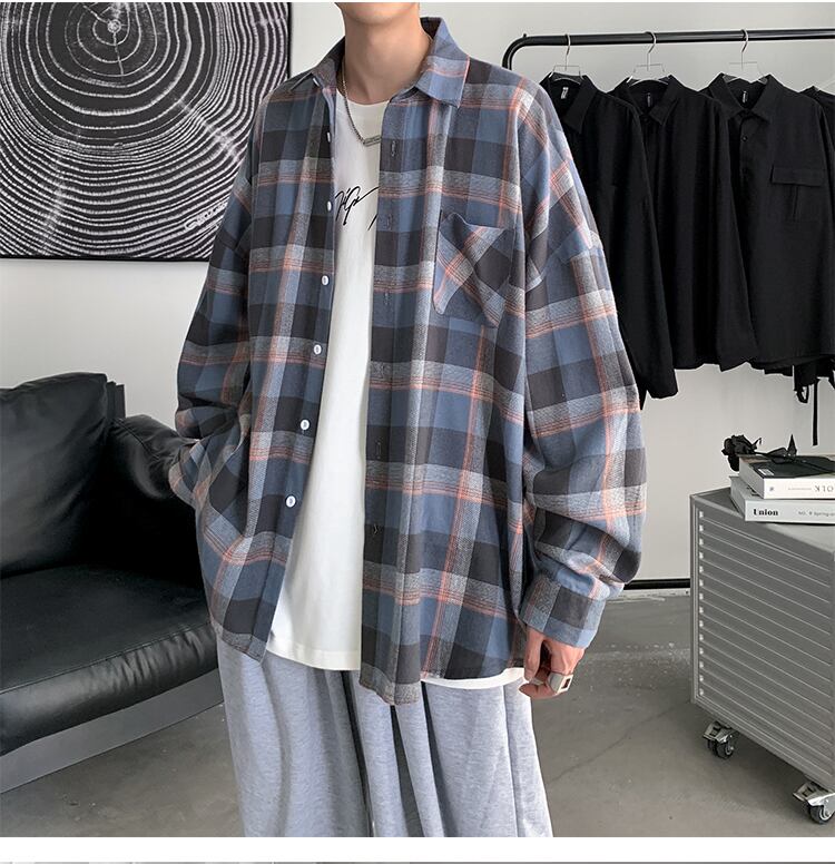 オータム格子柄ルーズシャツ カジュアルジャケット ロング かわいい 秋物 2/13 mi2099472306203