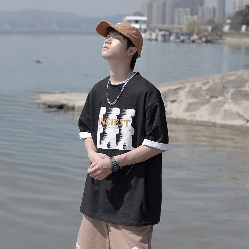 サマープリントラウンドネックTシャツ ルーズ 夏物 Oネック 2/13 mi2016040456544